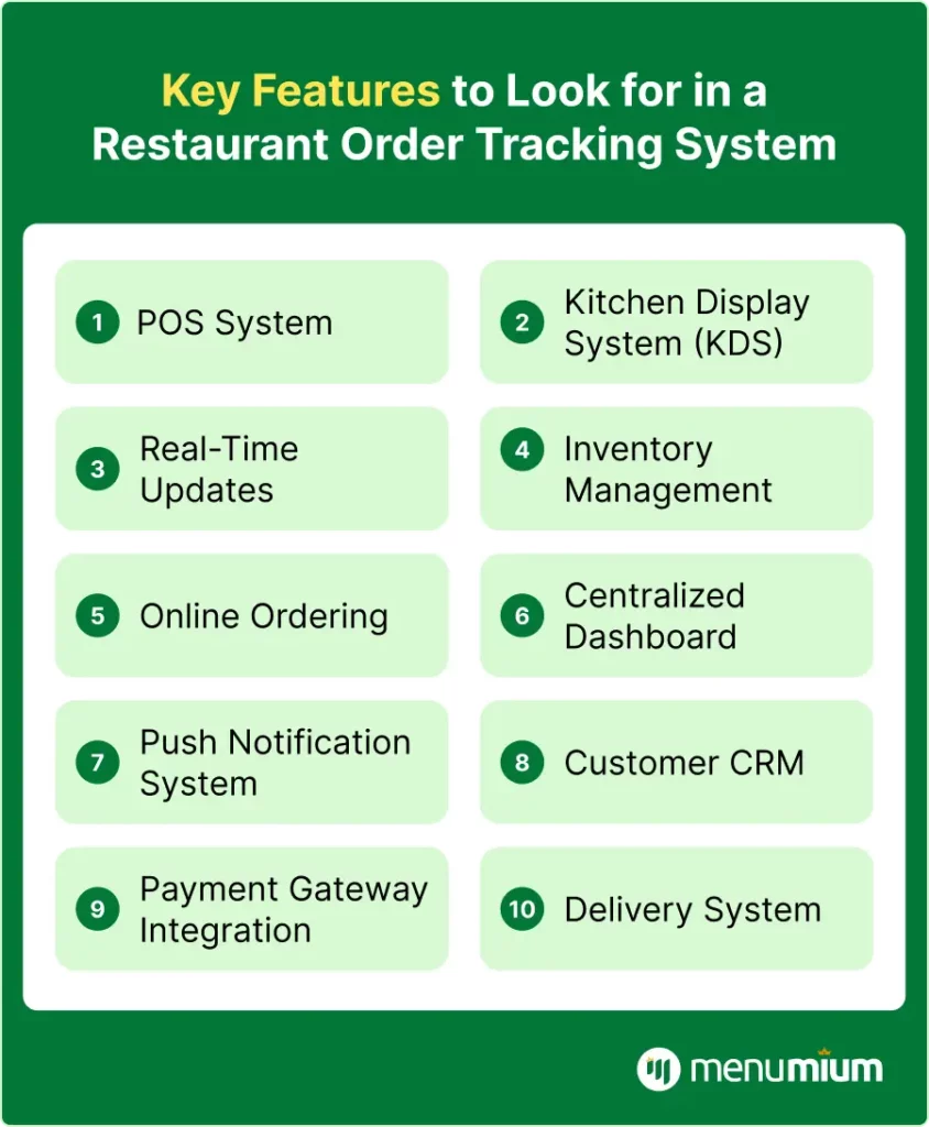Does Menumium come with all the necessary features for restaurant order tracking?